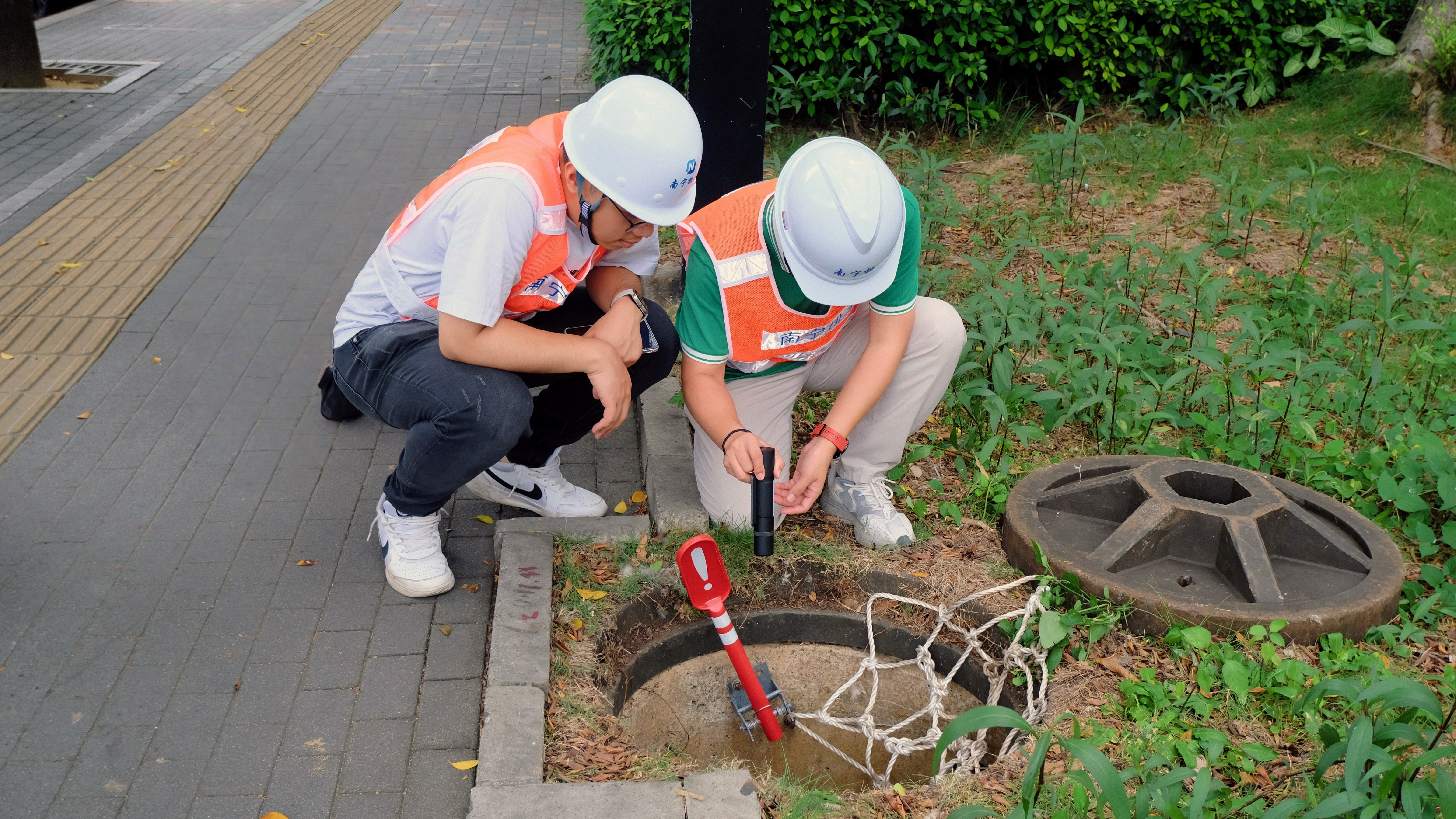 市排水公司工作人員對高考考點周邊排水管道進行檢查